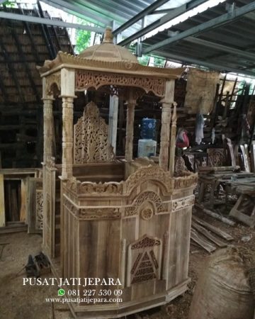 Mimbar Masjid adalah produk yang wajib ada dalam sebuah masjid atau mushola difungsikan sebagai tempat khotbah terutama saat adanya pengajian atau sholat jum’at. Kami hadirkan perabotan mimbar/podium masjid terbilang sangat penting sekali. Oleh sebab itu kami memproduksi mimbar dengan kualitas terbaik yang menggunakan bahan kayu jati berkualitas. Jadi tidak salah jika konsumen banyak yang membeli atau memesan produk ini dari bahan kayu jati karena kualitas dan keawetan nya yang sudah teruji sangat lama.
