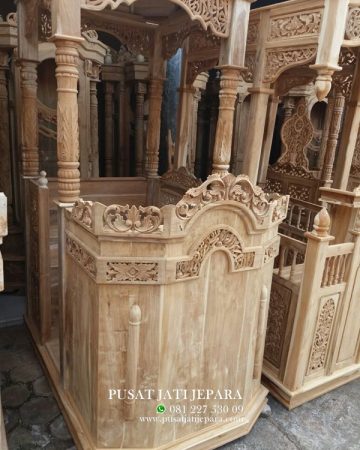 Mimbar Masjid adalah produk yang wajib ada dalam sebuah masjid atau mushola difungsikan sebagai tempat khotbah terutama saat adanya pengajian atau sholat jum’at. Kami hadirkan perabotan mimbar/podium masjid terbilang sangat penting sekali. Oleh sebab itu kami memproduksi mimbar dengan kualitas terbaik yang menggunakan bahan kayu jati berkualitas. Jadi tidak salah jika konsumen banyak yang membeli atau memesan produk ini dari bahan kayu jati karena kualitas dan keawetan nya yang sudah teruji sangat lama.